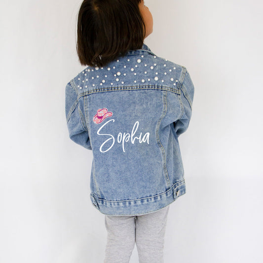 (Blue Pearl) Custom Cowgirl Hat Patch Kids Denim Jacket
