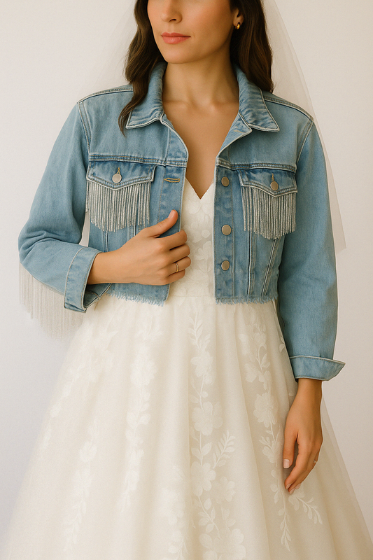 (Blue Fringe) Bridal Denim Jacket Gifts