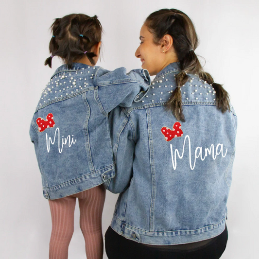 (Blue Pearl) Personalized Mama and Mini Bow Denim Jackets