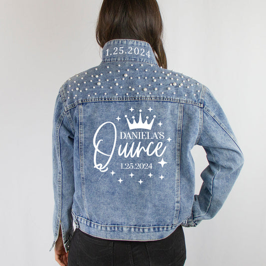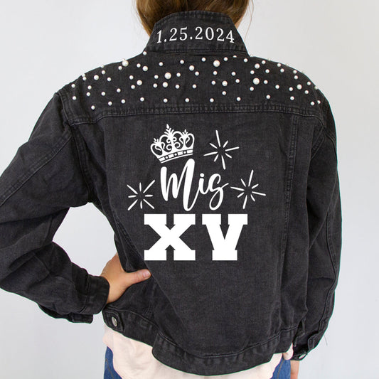 (White Fringe) Bride Rhinestone Patch Jean Jacket