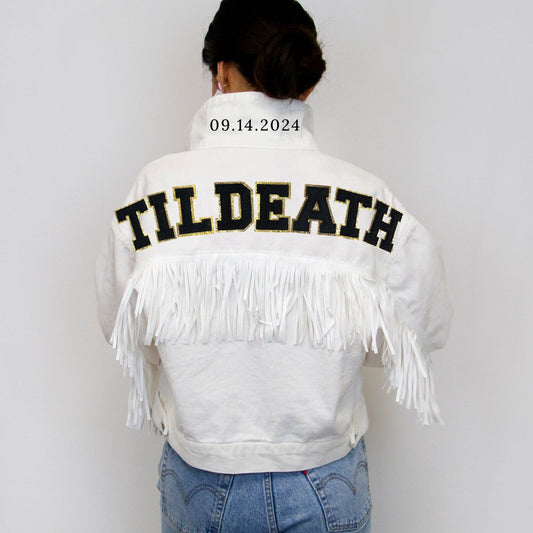 (White Fringe) Bride Patch White Fringe Denim Jacket