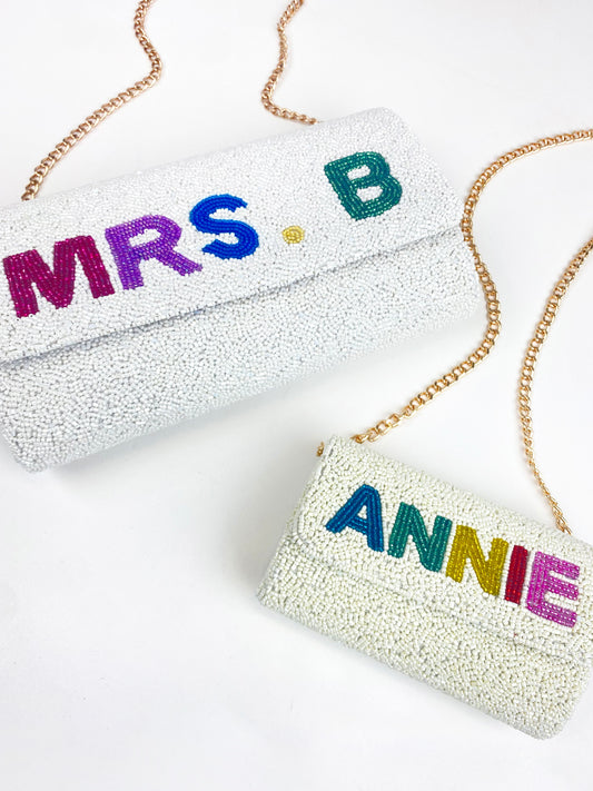 Fully Beaded Foldover Name Clutch for Bridesmaid