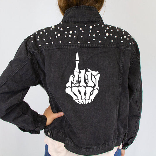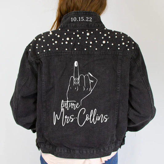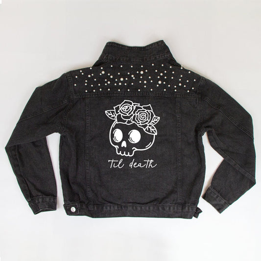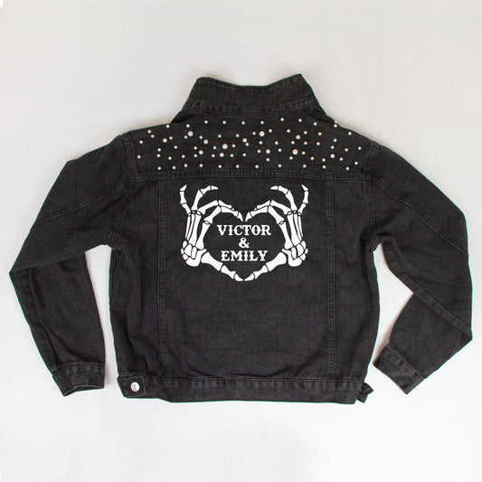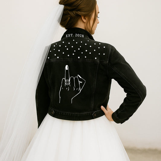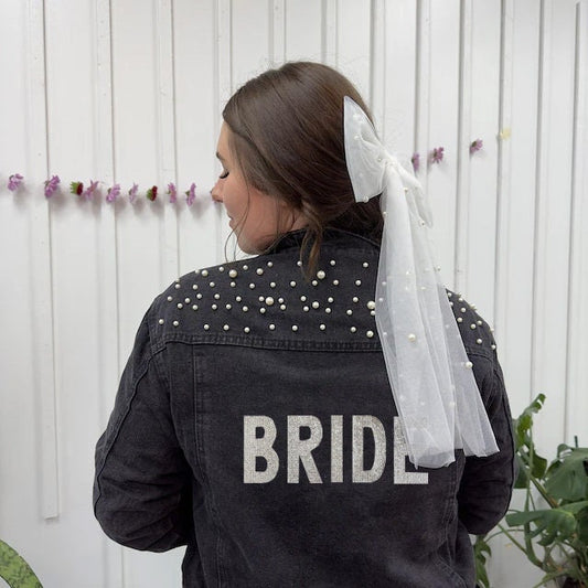 (Black Fringe) Rhinestone Bride Patch Denim Jacket