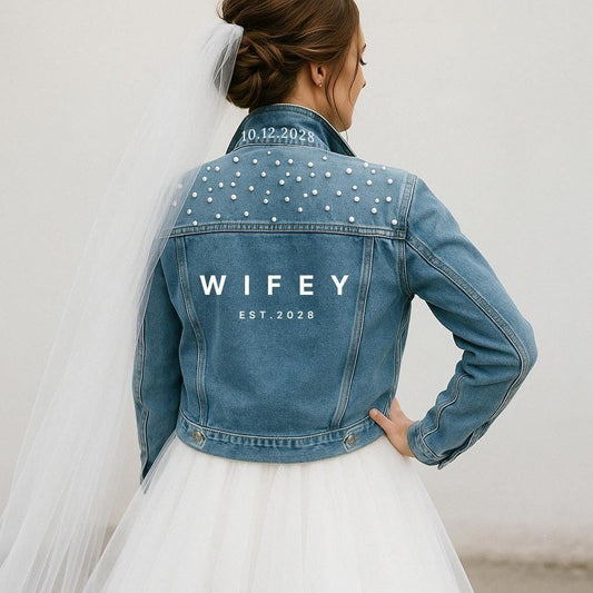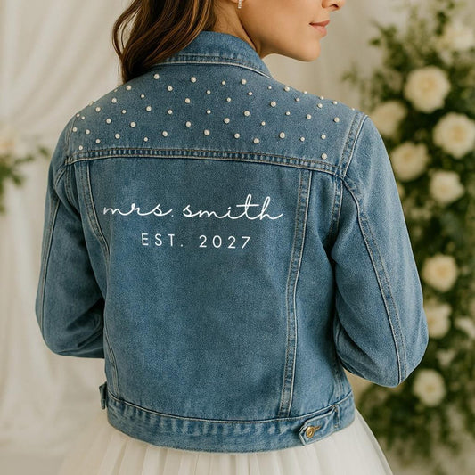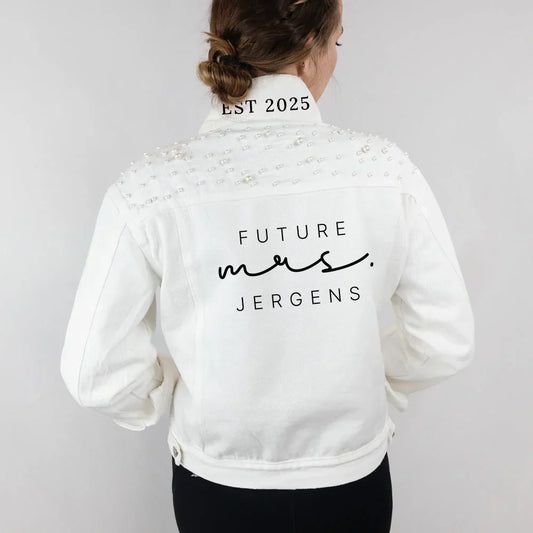 (White Fringe) Bride Rhinestone Patch Jean Jacket