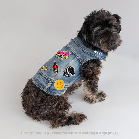 Patch dog denim jackets are such a hit these days! With numerous patches to choose from you can make your dog jacket unique. Style your pooch with this dog denim jacket today!