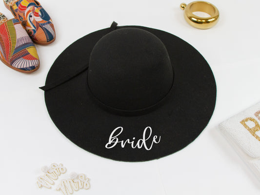 Bride, Bride Tribe Black Felt Floppy Hat