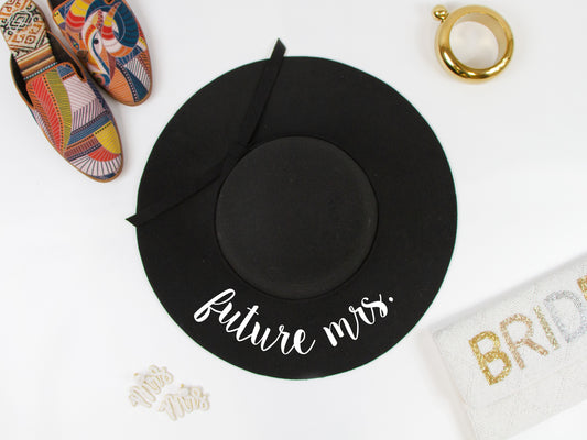 Future Mrs Black Felt Floppy Hat