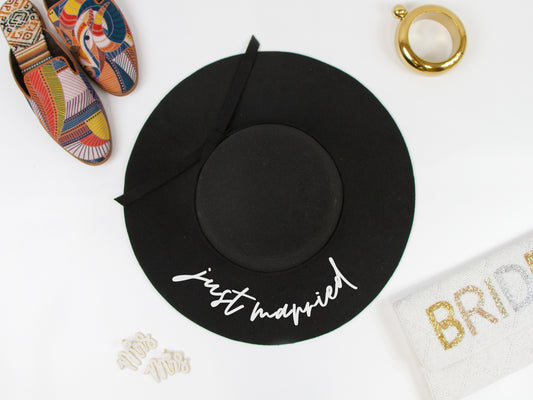 Just Married Black Felt Floppy Hat