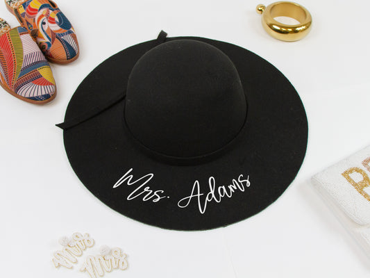 Custom (Last Name) Black Felt Floppy Hat