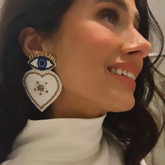 Eye/Heart Seed Bead Earrings
