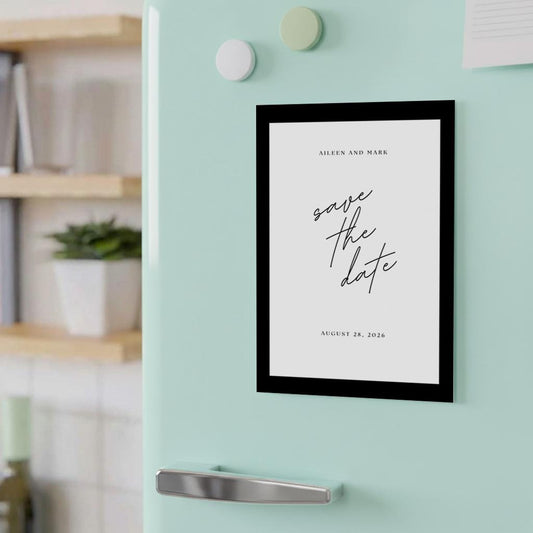 Minimalist Wedding Magnet Favor With Black Border