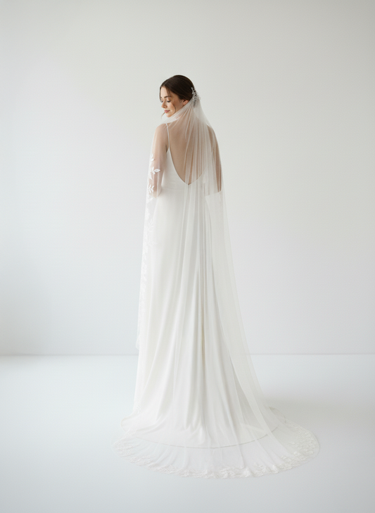 Minimal Cathedral Wedding Veil With Lace Detail