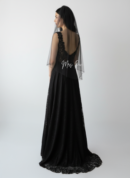 Black Embroidered Mrs Wedding Veil