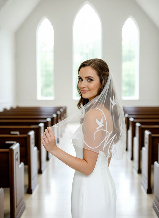 Beaded Bird Personalized Wedding Veil