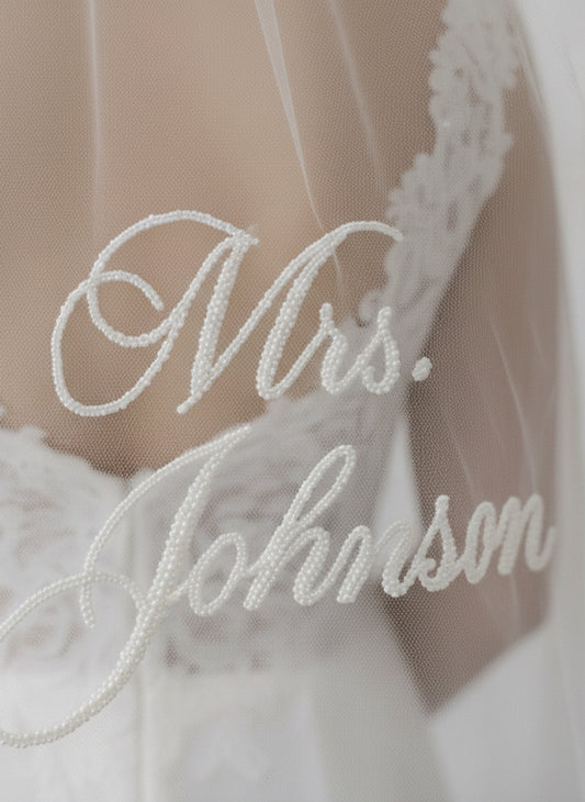 Personalized Wedding Veil with Custom Embroidered Name