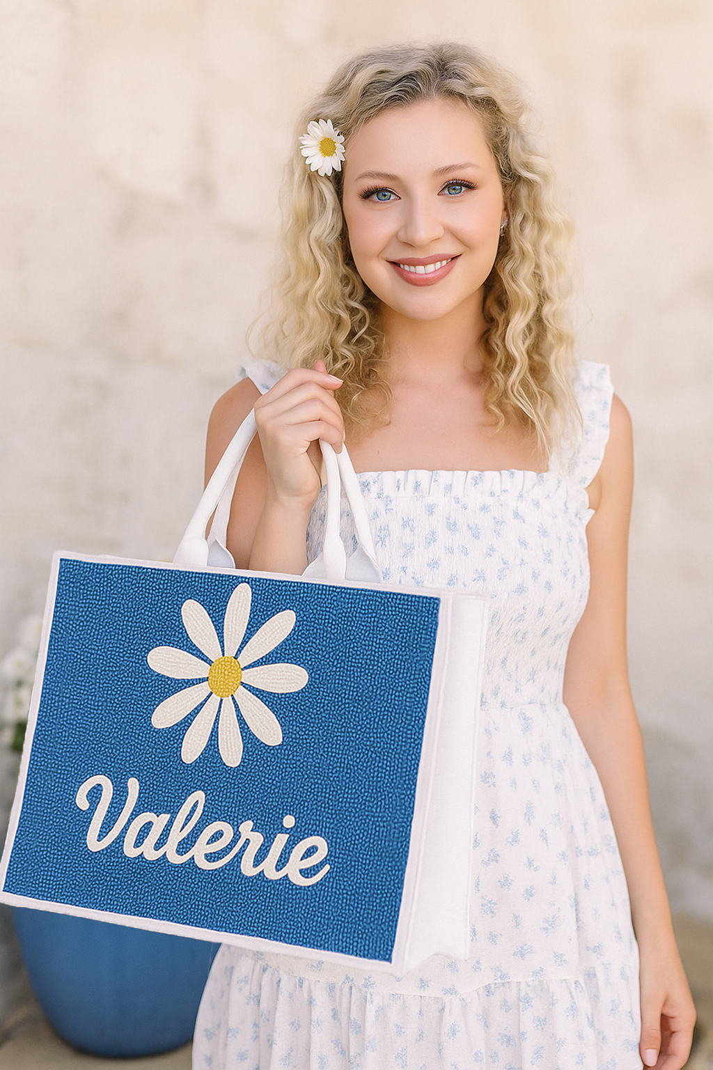 Add a burst of floral charm to your everyday style with this personalized beaded flower tote bag. Handcrafted with love, this custom name handbag features delicate blooms—perfect for summer outings, beach days, or as a thoughtful bridesmaid gift. Whether you're drawn to wildflowers, daisies, or a boho vibe, this floral jute tote brings beauty and function together in one unique accessory.