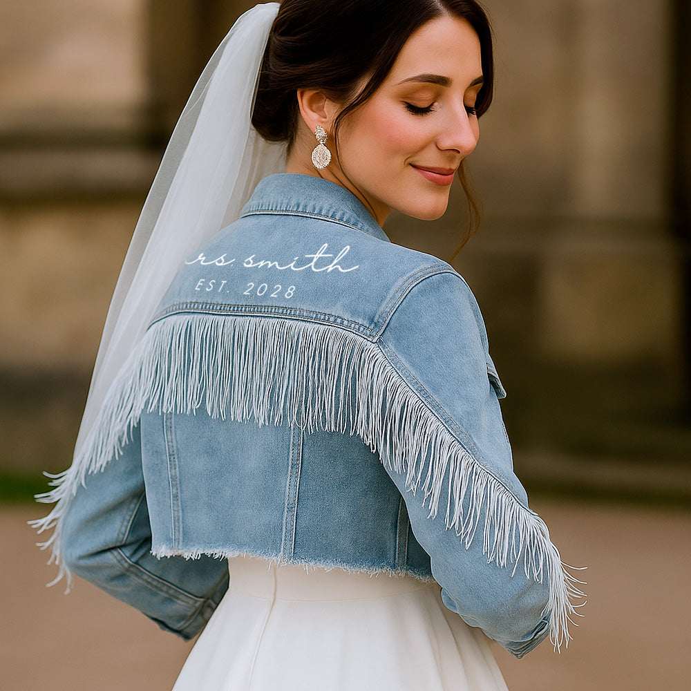 Custom Denim Jacket, Custom Bride Jacket, Customized Denim Jacket for Brides, Bridal Party Jean Jacket, Pearl Denim Jacket, Personalized Denim Jacket, Personalized Jean Jacket, Personalized Pearl Jean Jacket, Bachelorette Party Jean Jacket, Bachelorette Party Denim Jacket, Custom Mrs jacket, Mrs Last Name Jacket, The Mrs Jacket, Cute Denim Jacket, Personalized Denim, Honeymoon Jacket, Mrs. Last Name