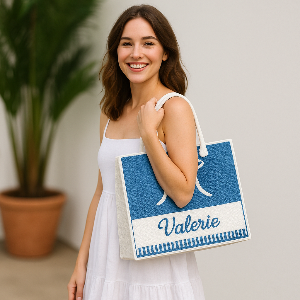 Looking for a gift for her? Look no further! This fully custom tote bag is the perfect gift for a bride, bridesmaid, mother, sister, or friend. Personalize this beaded tote with their favorite pattern, colors, and their name! Or get one for yourself! Our beaded canvas tote works great as a beach tote bag or a honeymoon travel tote. These tote bags are quality made with an inner satin lining, inside zipper pocket, along with two open pockets and a magnetic snap closure to keep your belongings organized and secure.