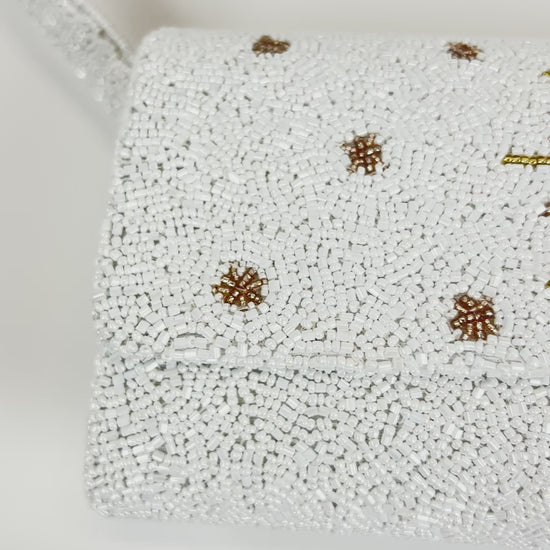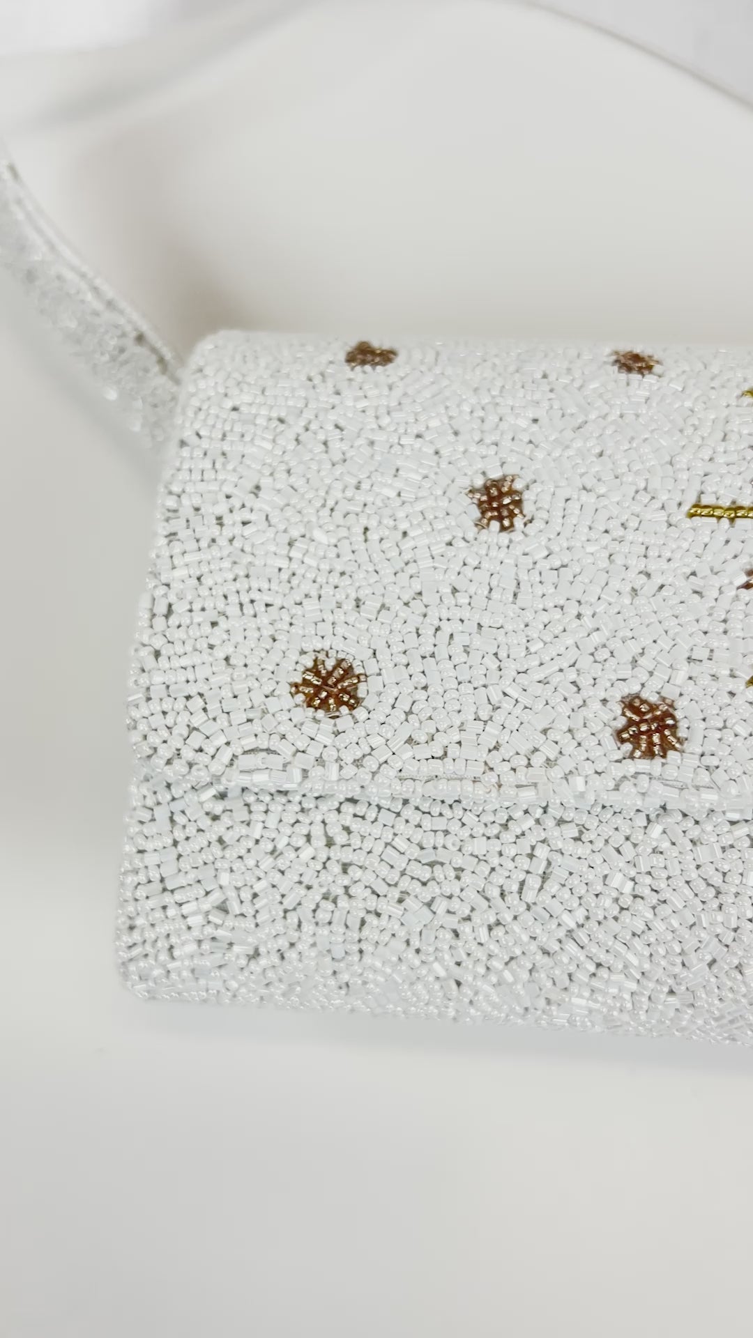 This celestial sun and moon beaded shoulder bag is the perfect statement accessory for brides and special occasions. Handcrafted with intricate beadwork on a soft ivory background, the radiant sun and crescent moon design adds an elegant, mystical touch to any bridal look. Designed to complement wedding gowns beautifully, this shoulder bag is both functional and timeless—ideal for holding your essentials while elevating your outfit for weddings, receptions, bridal showers, or evening events.