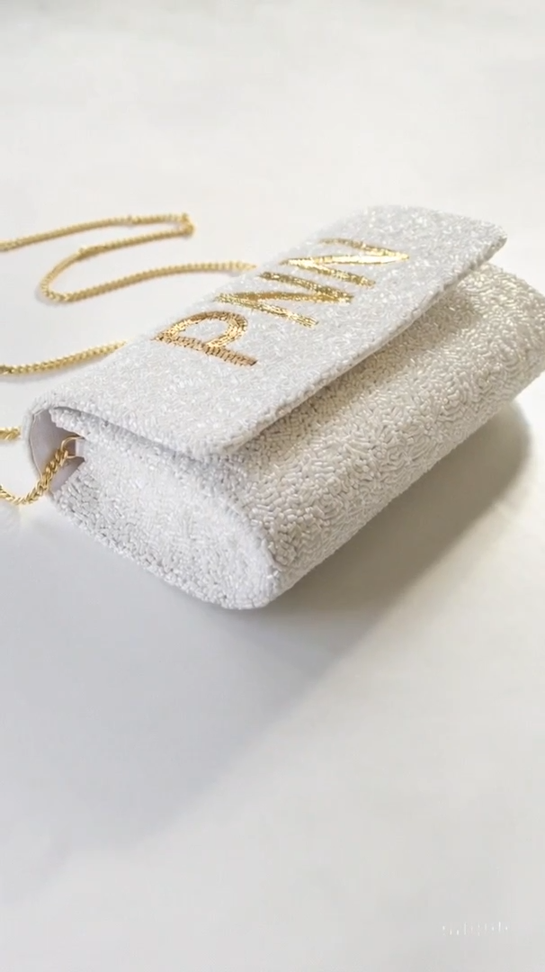 Each clutch is handcrafted with intricate beadwork and personalized to your design. From custom colors to meaningful names, dates, or photos, every detail reflects your vision.