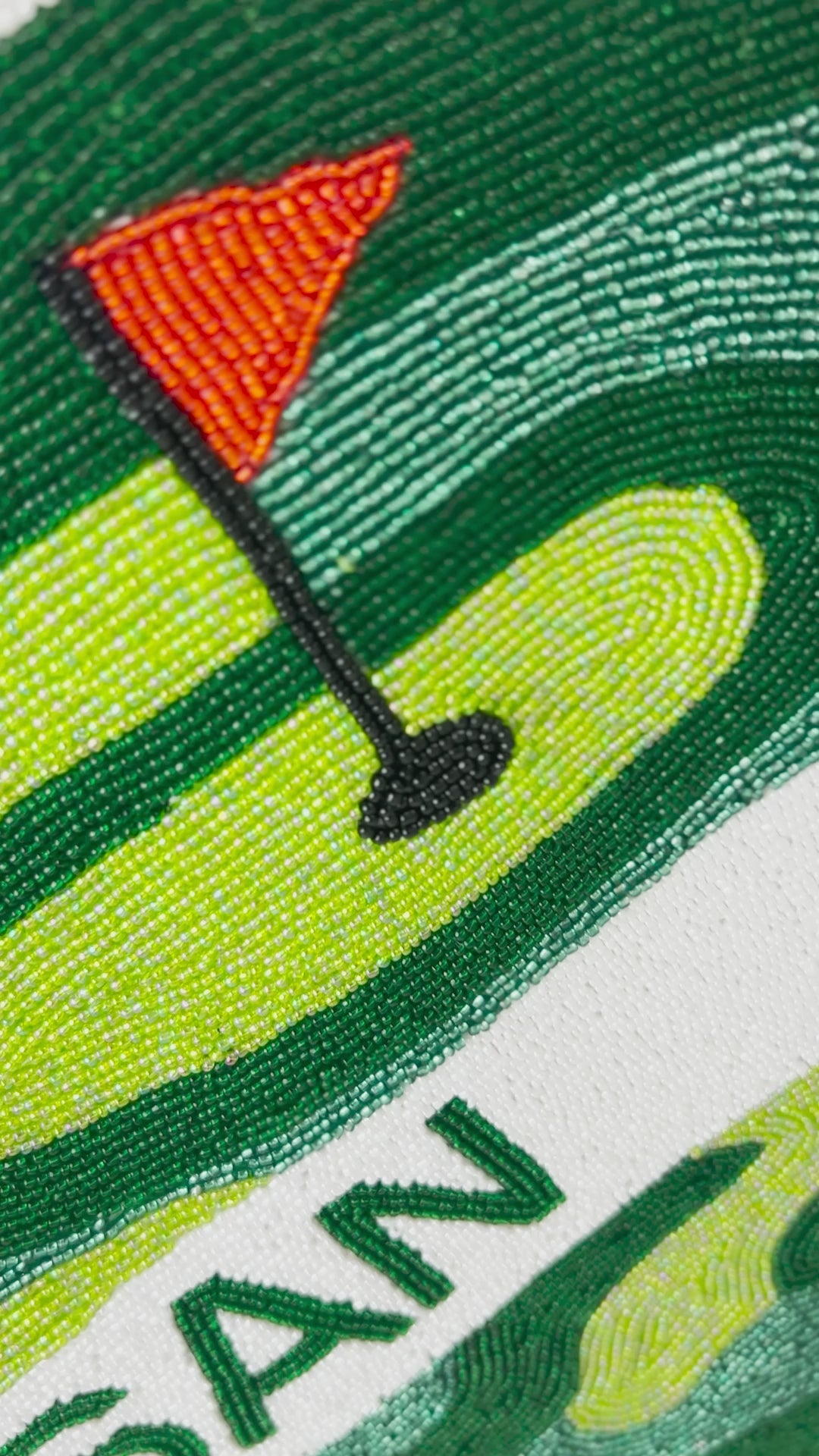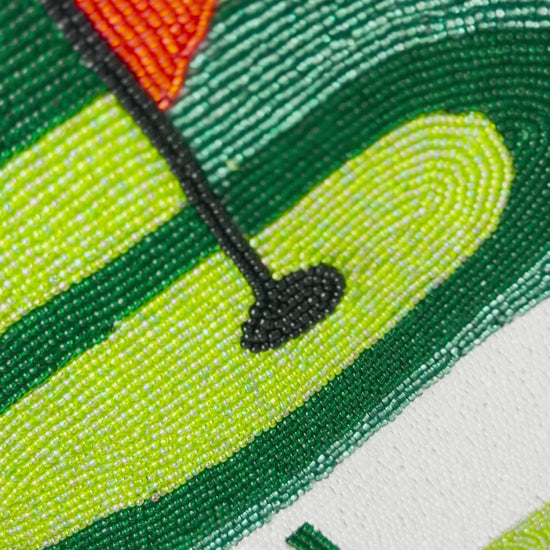 Carry your love for golf everywhere with this personalized beaded tote bag! Featuring a hand-beaded golf course design and your name in bold letters, this tote is the perfect mix of sporty and stylish. Whether used on the green, at a tournament, or as a statement everyday bag, this tote turns heads. “Stephanie” is just a sample — personalize yours with any name!
