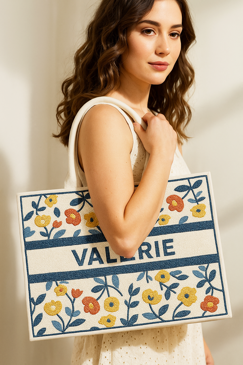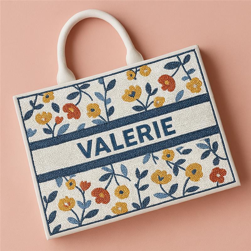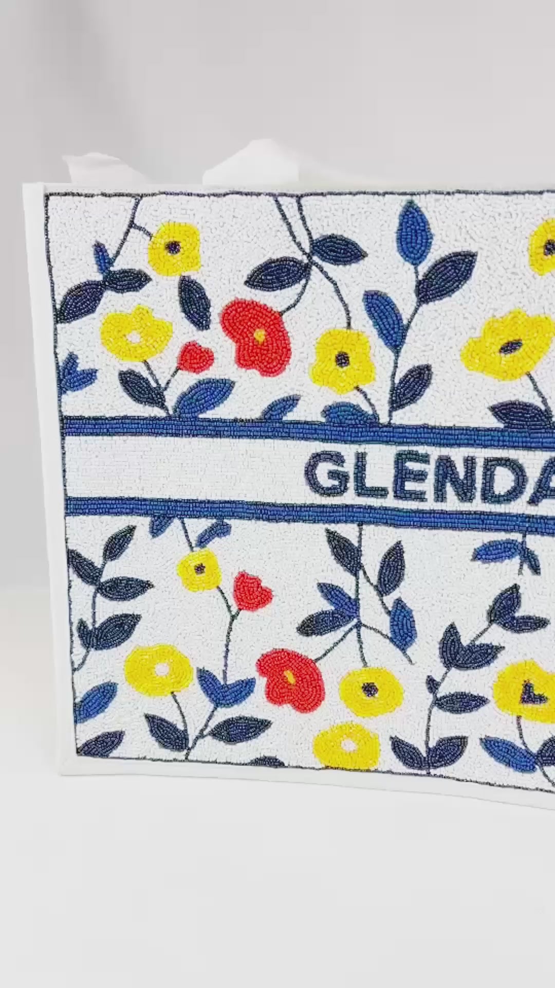 Looking for a gift for her? Look no further! This fully custom tote bag is the perfect gift for a bride, bridesmaid, mother, sister, or friend. Personalize this beaded tote with their favorite pattern, colors, and their name! Or get one for yourself! Our beaded canvas tote works great as a beach tote bag or a honeymoon travel tote. These tote bags are quality made with an inner satin lining, inside zipper pocket, along with two open pockets and a magnetic snap closure to keep your belongings organized and secure.