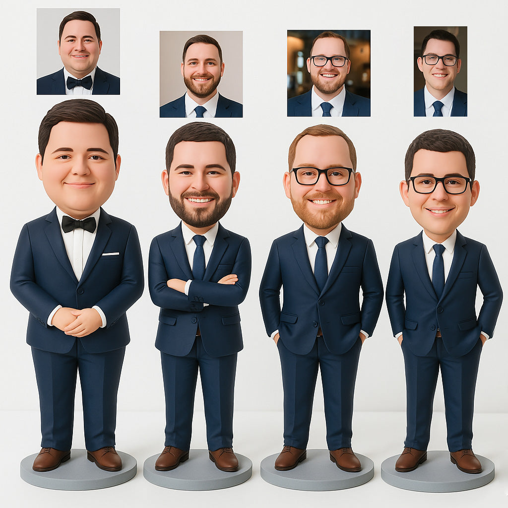 Custom bobbleheads may be made to fit any event or theme and are timeless and ageless. Whatever the occasion, whether it be a wedding, an engagement, a birthday celebration, Valentine's Day, or just for the particular "him" or "her" in your life. Any bride and groom, friend, coworker, or family member can have their likeness captured in an enduring piece of art by our skilled artisans. Give this unique present right away and you can be sure that it will be cherished forever!