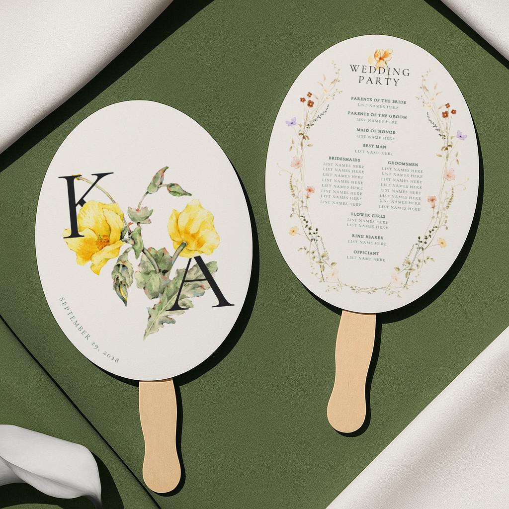 Keep your guests cool and comfortable with these beautifully crafted custom wedding hand fans — the perfect combination of style and practicality for your big day. Each fan has a unique design you can personalize with your names, monogram, wedding timeline, wedding program or wedding party participants, making them a memorable keepsake. Ideal for outdoor ceremonies, summer weddings, or destination celebrations, these fans double as a functional program and a unique favor. Made with high-quality materials and sturdy handles, they add an elegant touch to your ceremony while keeping guests refreshed and engaged.