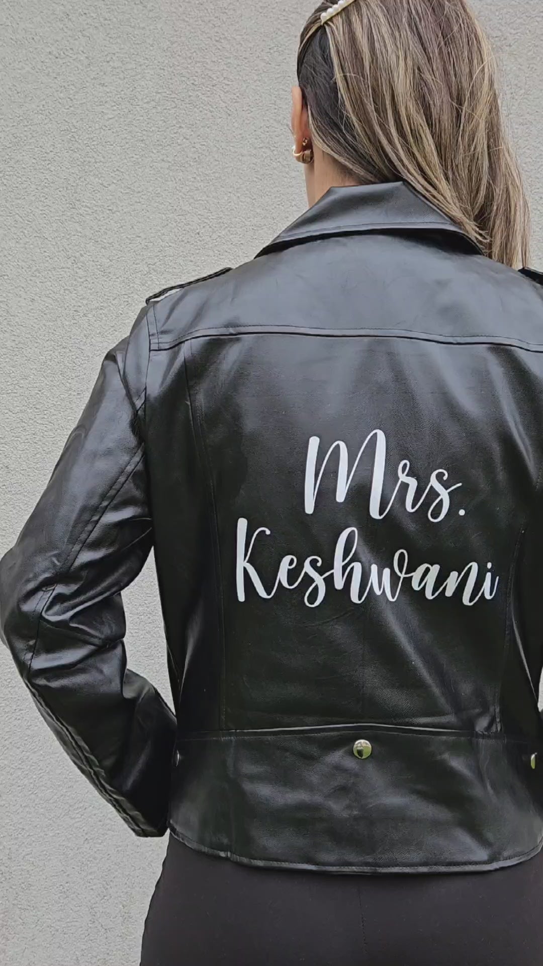 Bride Leather Jackets are such a hit these days! If you're looking for the perfect fall or winter weather wedding jacket, our bridal leather jackets are great! These also make a great engagement gift or bridal shower gift for a bride-to-be. If you need your bachelorette party accessory, this black leather jacket is sure to help you rock your bach party! You can print anything on the back and on the back collar as well!