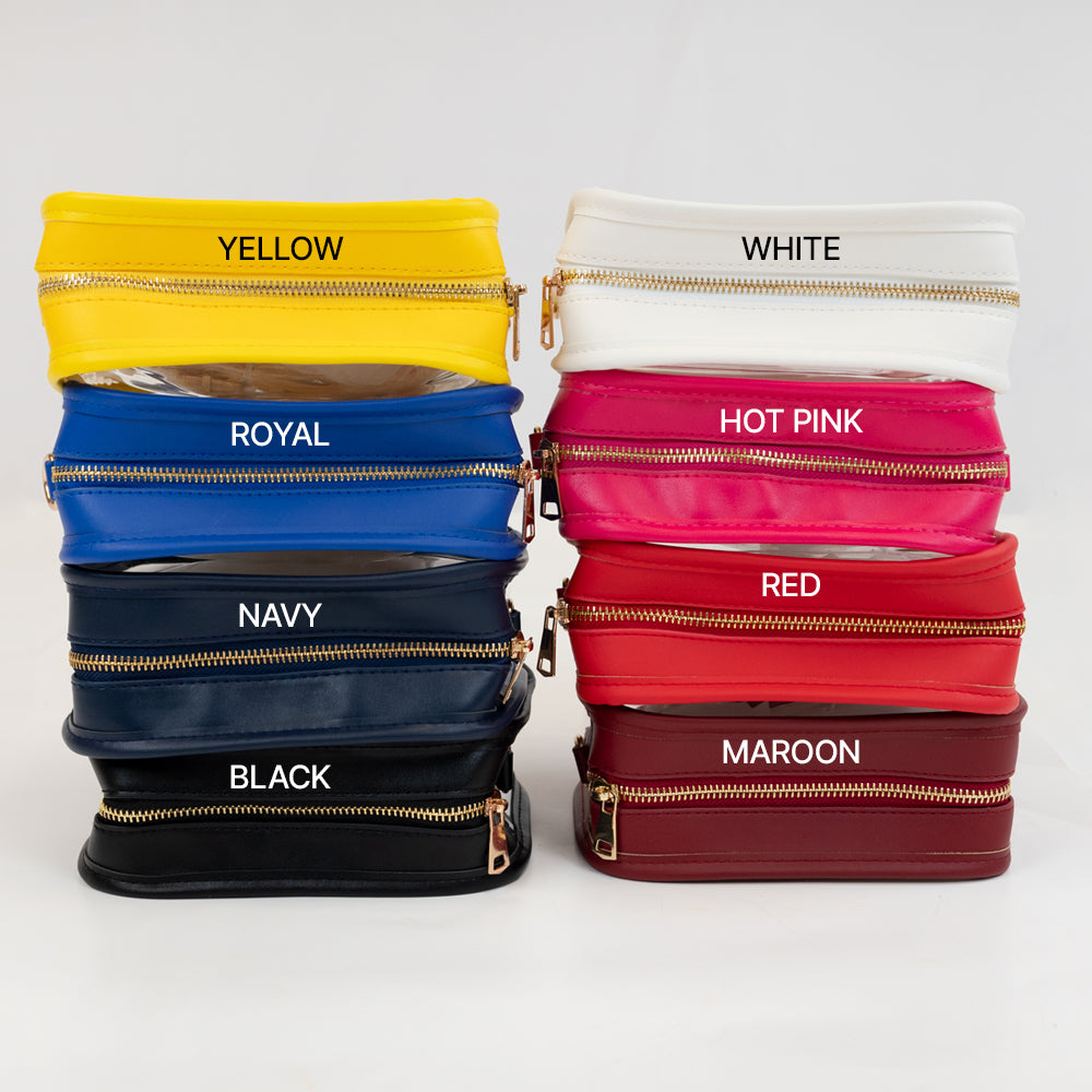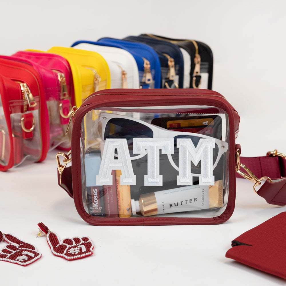 Gorgeous and versatile clear stadium bags, perfect for a personalized game day purse. Box includes a removable strap for over-the-shoulder or cross body purse carrying capabilities and a zipper closure to keep all your items secure. Want to add something to make your clutches really special? Vinyl or patch customization in numerous colors are available to make your game day purse truly unique! These clear stadium purses aren’t just excellent purses for game day, but also make the perfect clear concert bag and festivals that may have clear bag policies!