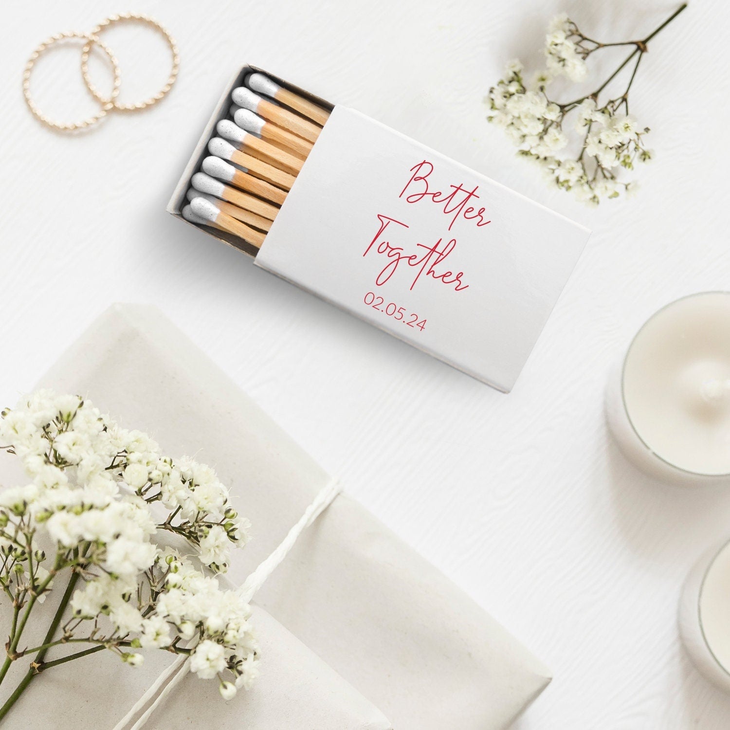 Enhance your wedding reception with our exquisite custom matchboxes featuring elegant white heads. Personalize every detail of your special day with our bespoke wedding matchboxes, designed to add a touch of sophistication and charm to your celebration. From the first spark to the lasting memories, ignite your love story with our beautifully crafted matchboxes. Make your wedding truly unforgettable with our customized matchboxes that perfectly blend style and functionality. Create a lasting impression with our unique wedding favors that guests will cherish long after the event. Shop now and let our custom matchboxes with white heads illuminate your love-filled journey.