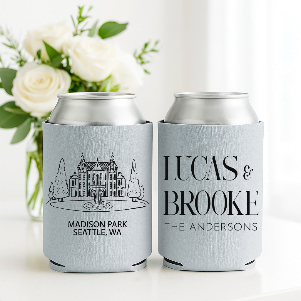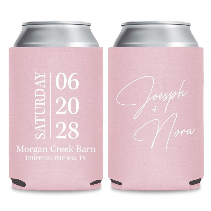Keep the party cool with personalized wedding can coolers, it's the perfect favors for guests and bridal parties.  Key Features: Standard printing includes 2 sides (note in personalization box if you’d like just 1). Rush options available with free shipping upgrades. Mock-ups provided upon request after ordering.Custom Wedding Can Coolers