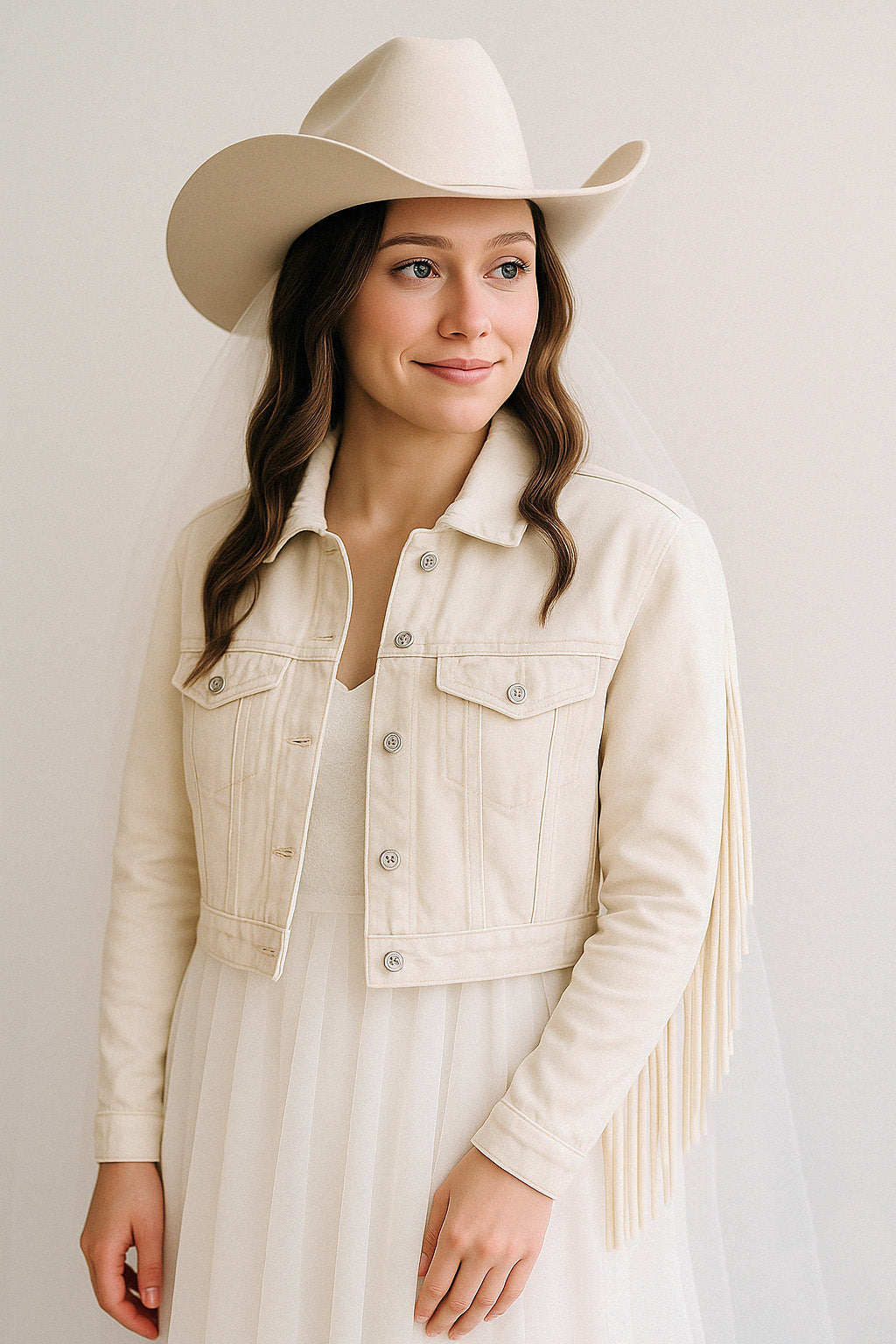 Custom White Denim Jacket for the Bride - Bridal Jean Jacket