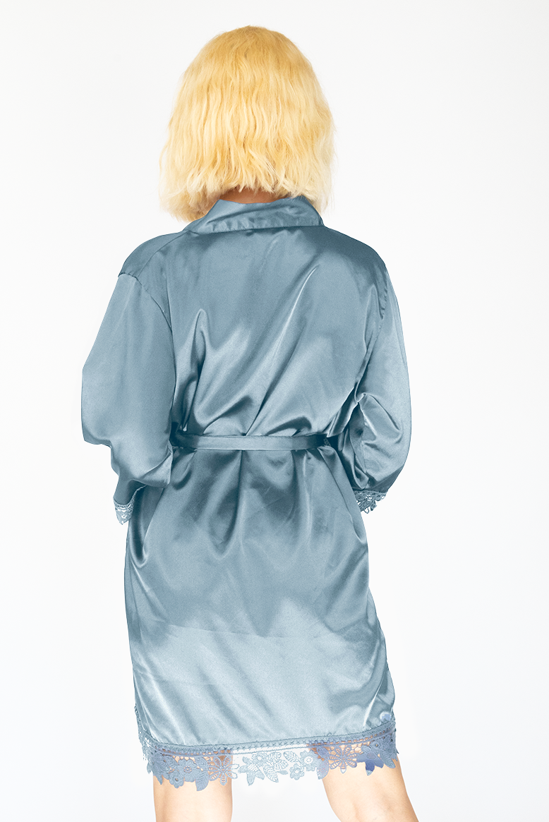 The made-to-order scalloped lace satin robe retains all the qualities you love about a traditional satin robe--soft, comfortable, luxurious--while featuring a slight upgrade to its look. This stylish item is perfect for lounging on your day-offs or for living it up with your girls on a Bachelorette party!