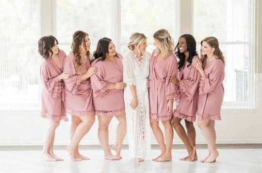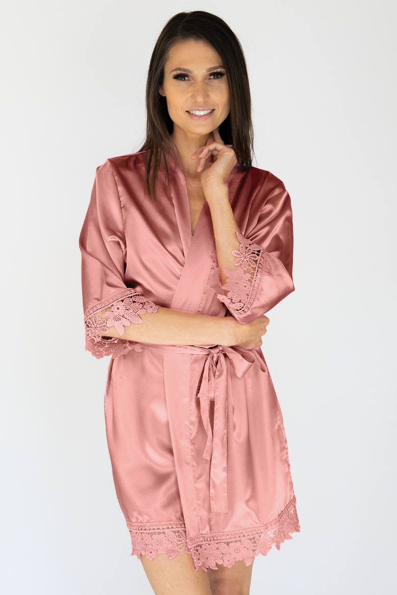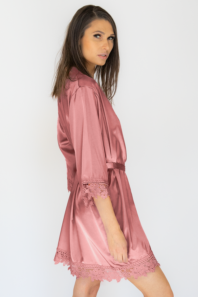 The made-to-order scalloped lace satin robe retains all the qualities you love about a traditional satin robe--soft, comfortable, luxurious--while featuring a slight upgrade to its look. This stylish item is perfect for lounging on your day-offs or for living it up with your girls on a Bachelorette party!