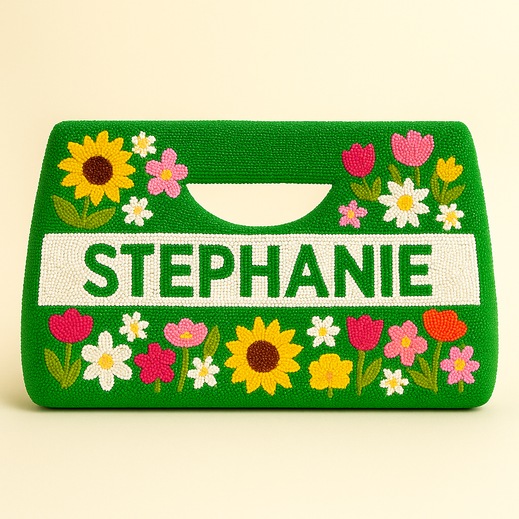 Celebrate the beauty of spring with this lively floral beaded handbag, bursting with colorful blooms and personalized just for you. Each flower is hand-stitched in vibrant detail, creating a cheerful garden scene. Ideal for birthdays, garden parties, or everyday use—this bag is as joyful and unique as its wearer.