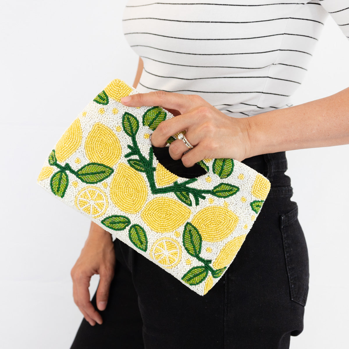 With a spacious interior, this handbag is as functional as it is fashionable, offering room for all your essentials like your phone, wallet, and keys. The magnetic closure provides ease and functionality keeping your items secure. Whether you're dressing up a casual outfit or adding a quirky twist to a chic ensemble, our beaded lemon purse is your go-to accessory for a effortless fun style.