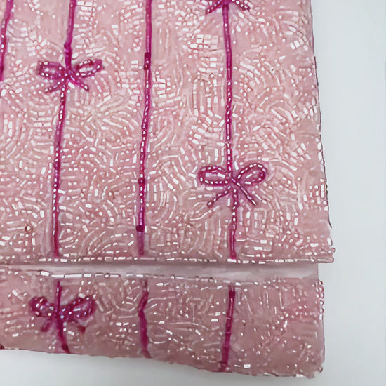 This Little Line Bows Clutch Purse will be perfect on your wedding day! This beaded gold texted bridal clutch Purse is handmade to perfection and has an intricate pattern that gives an elegant and classy addition to any outfit. This handy wedding purse can carry all your necessities throughout the exciting occasion with ease, from everyday essentials to special events. Get this bridal clutch handbag for yourself, or surprise the bride on her most-awaited day!