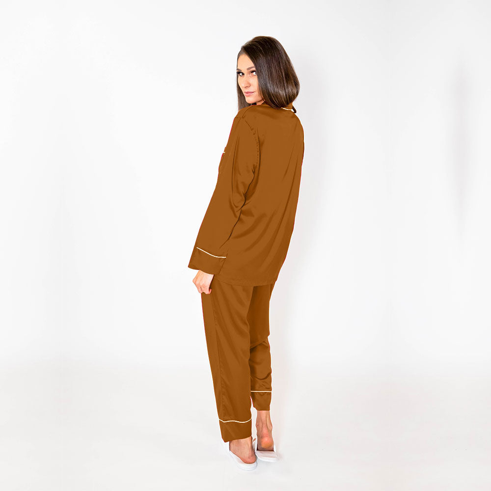 Our 2 piece Matte Satin Pajama Set is the perfect wedding day alternative to robes you've been searching for. Our bridesmaid pjs are made from breathable lightweight matte satin give your pjs a mute and more elegant look and feel - one that your bridesmaids will absolutely love. Our pjs are a gift you bridesmaids will appreciate long after the wedding. The pajama fabric color is contrasted by piping which adds a decadent touch to the pjs.