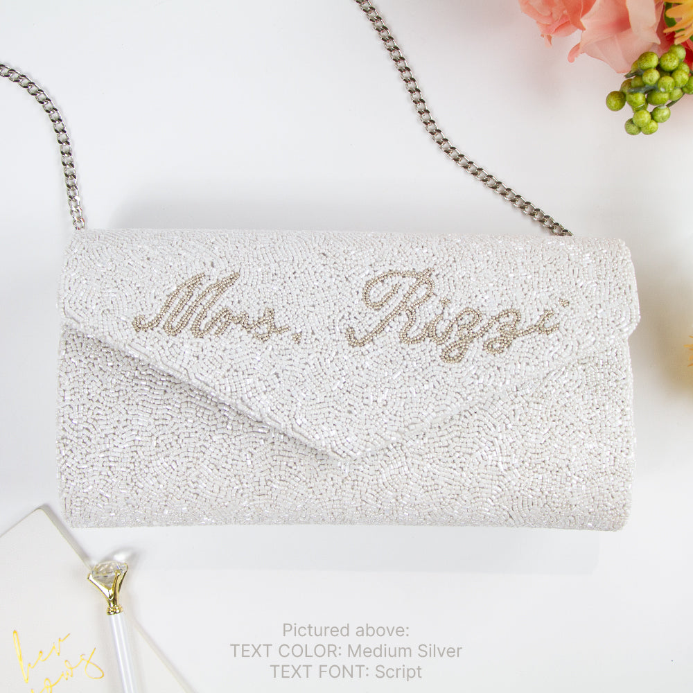 This Best Friend, Maid of Honor, or Bridesmaid Clutch is the perfect gift for your closest loved ones! Handmade with an intricate beaded pattern, it adds an elegant and classy touch to any outfit. The perfect size to carry all the essentials with ease, it's ideal for any special occasion. Treat yourself, or surprise your best friend, maid of honor, or bridesmaid with this thoughtful, stylish clutch!