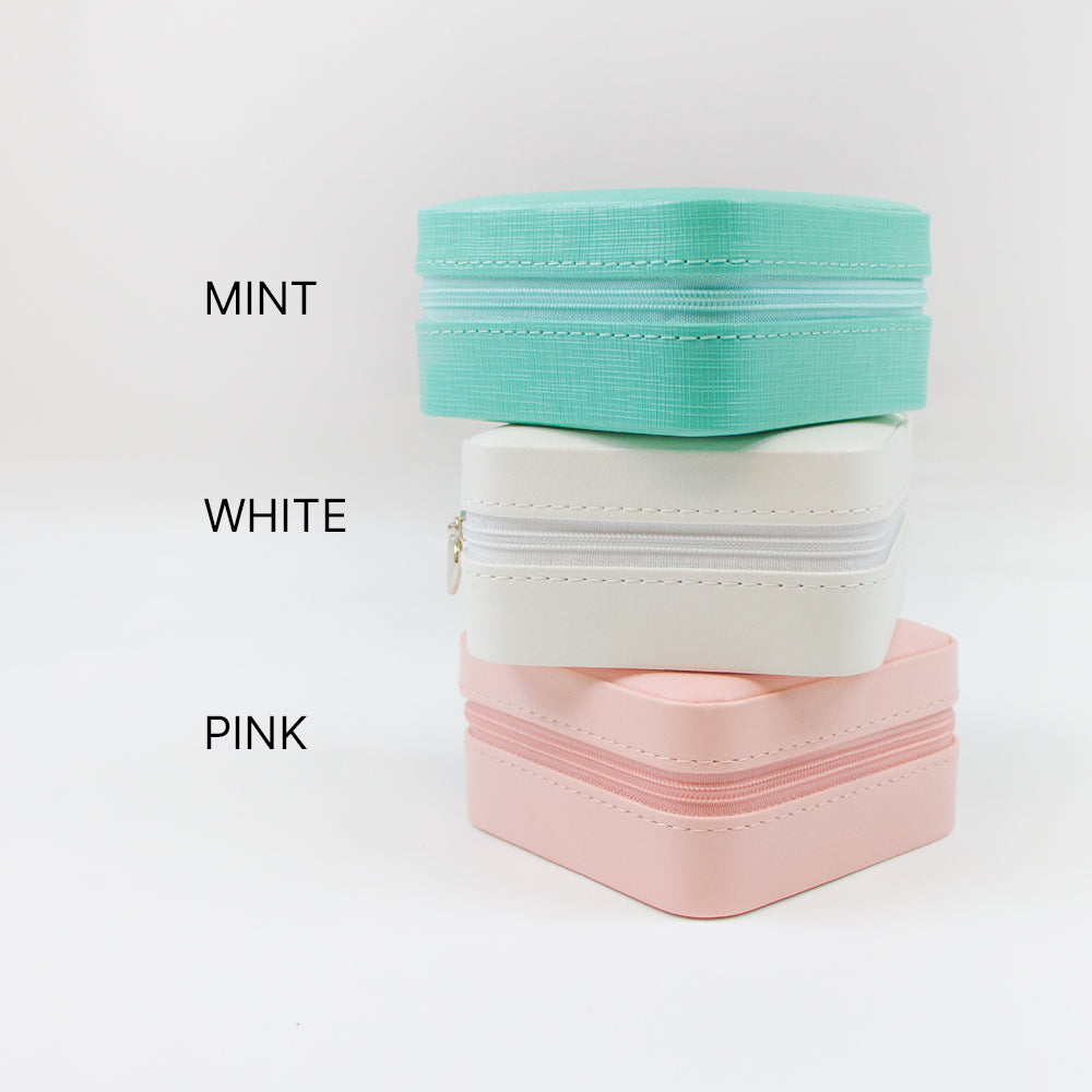 Getting ready to ask your girls to be your bridesmaids? Why not make the occasion extra special with a personalized jewelry box? Our jewelry boxes are made with high quality leather and feature 6 ring rolls, 4 divided compartments with removable dividers, 3 necklace hooks, and a sturdy zipper to keep all of your items secure. These jewelry boxes with customized initials are made to order with your choice of personalization. Our jewelry boxes are sure to make beloved and functional bridal party gifts.