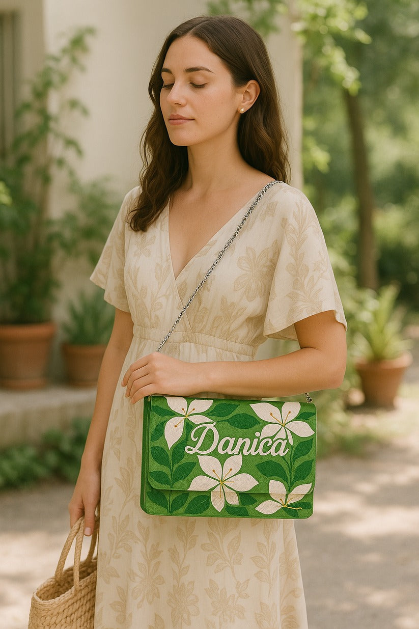 Whether you're strolling through a garden party, enjoying a tropical vacation, or celebrating a special event, this bag adds an effortless splash of color and charm. For a thoughtful touch, you can also customize it with your name or a special message, making it a truly personal keepsake or gift.