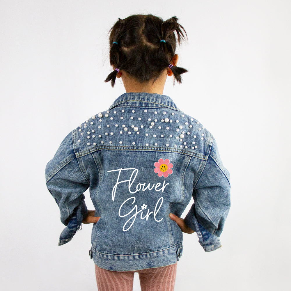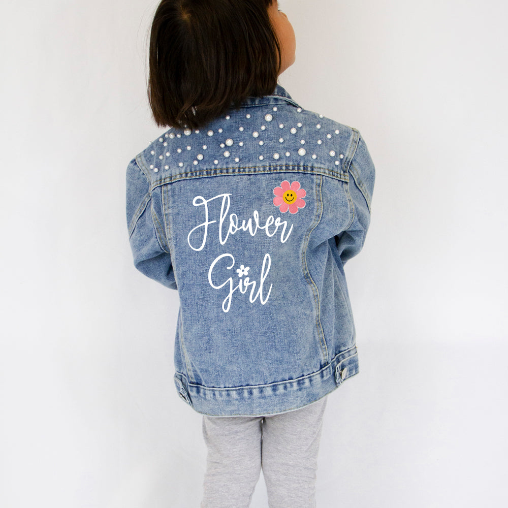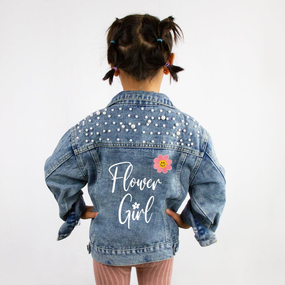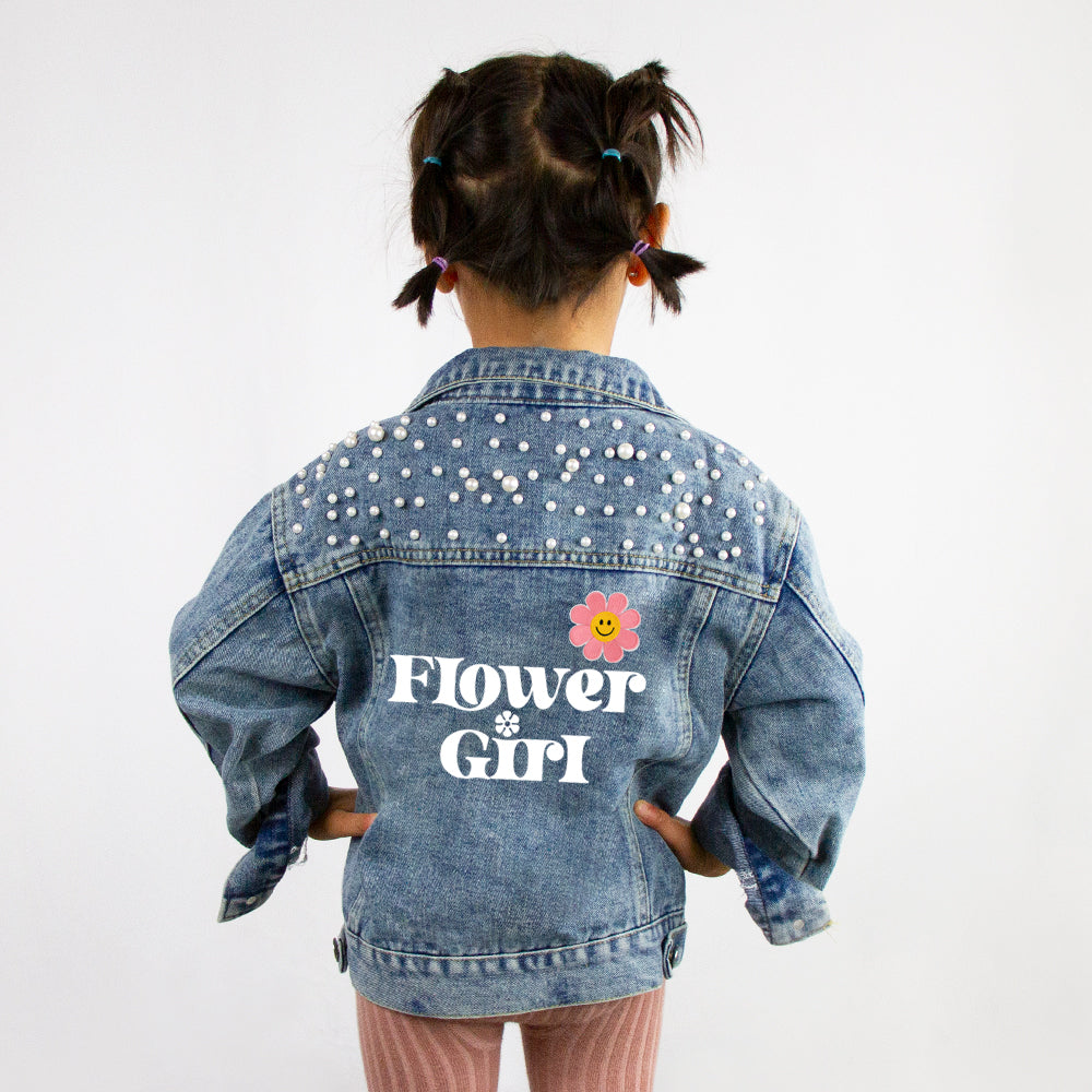 Looking for a flower girl gift for your wedding day? These Hot Pink Bow Custom Denim Jacket make the perfect custom wedding gift for a flower girl. Made with pearls securely fastened by pins across the shoulders and front, these jackets are quality and have a fun and elegant touch!