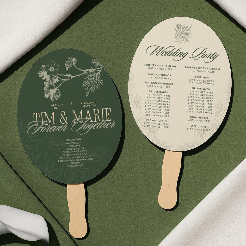 Keep your guests cool and comfortable with these beautifully crafted custom wedding hand fans — the perfect combination of style and practicality for your big day. Each fan has a unique design you can personalize with your names, monogram, wedding timeline, wedding program or wedding party participants, making them a memorable keepsake. Ideal for outdoor ceremonies, summer weddings, or destination celebrations, these fans double as a functional program and a unique favor. Made with high-quality materials and sturdy handles, they add an elegant touch to your ceremony while keeping guests refreshed and engaged.