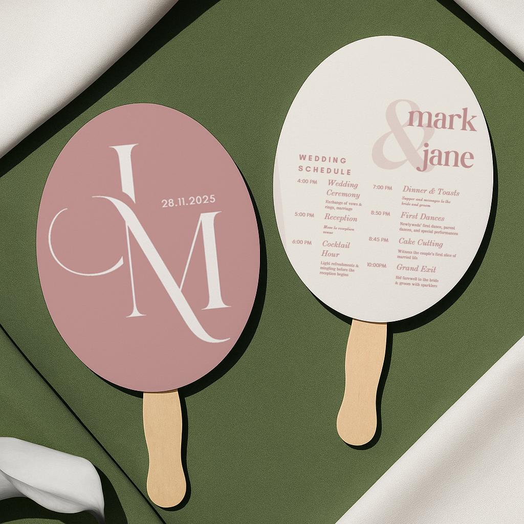 Keep your guests cool and comfortable with these beautifully crafted custom wedding hand fans — the perfect combination of style and practicality for your big day. Each fan has a unique design you can personalize with your names, monogram, wedding timeline, wedding program or wedding party participants, making them a memorable keepsake. Ideal for outdoor ceremonies, summer weddings, or destination celebrations, these fans double as a functional program and a unique favor. Made with high-quality materials and sturdy handles, they add an elegant touch to your ceremony while keeping guests refreshed and engaged.