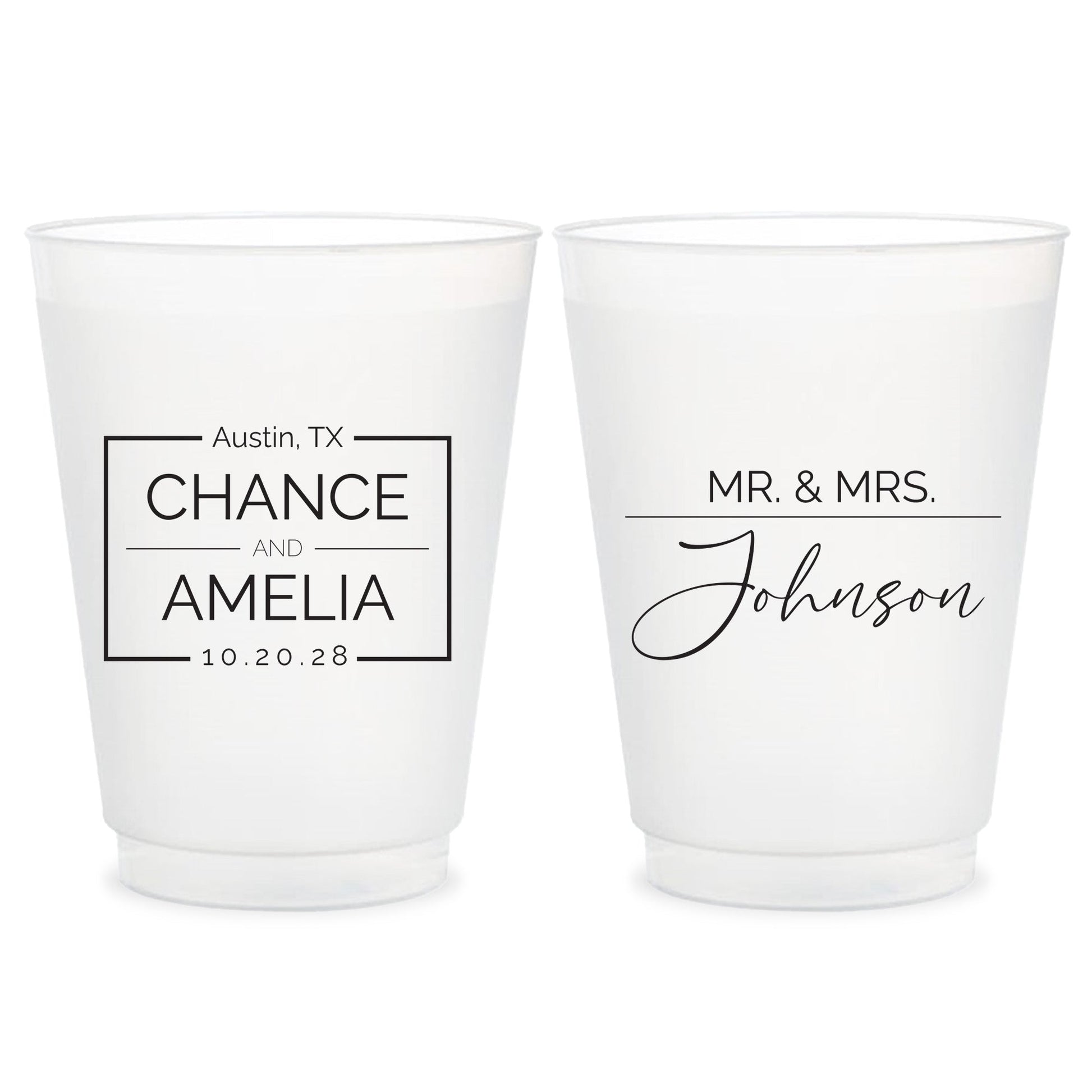 Wedding Frosted Cups, Wedding Party Frosted Cups, Personalized Wedding Cups, Wedding Frosted Plastic Cups, Wedding Plastic Cups