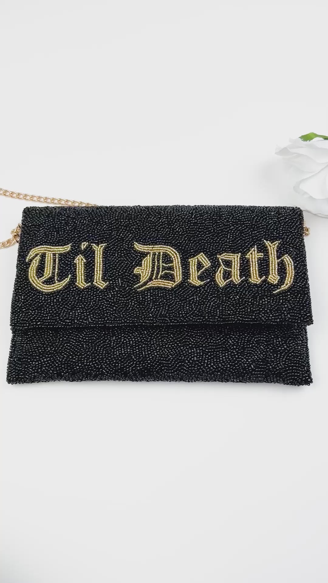 This Personalized Til Death Clutch Purse Giftwill be perfect on your wedding day! This beaded wedding clutch purse is handmade to perfection and has an intricate pattern that gives an elegant and classy addition to any outfit. From everyday essentials to special events, this handy bridal purse can carry all your necessities throughout the exciting occasion with ease. Get this bridal clutch handbag for yourself or surprise the bride on her most-awaited day!