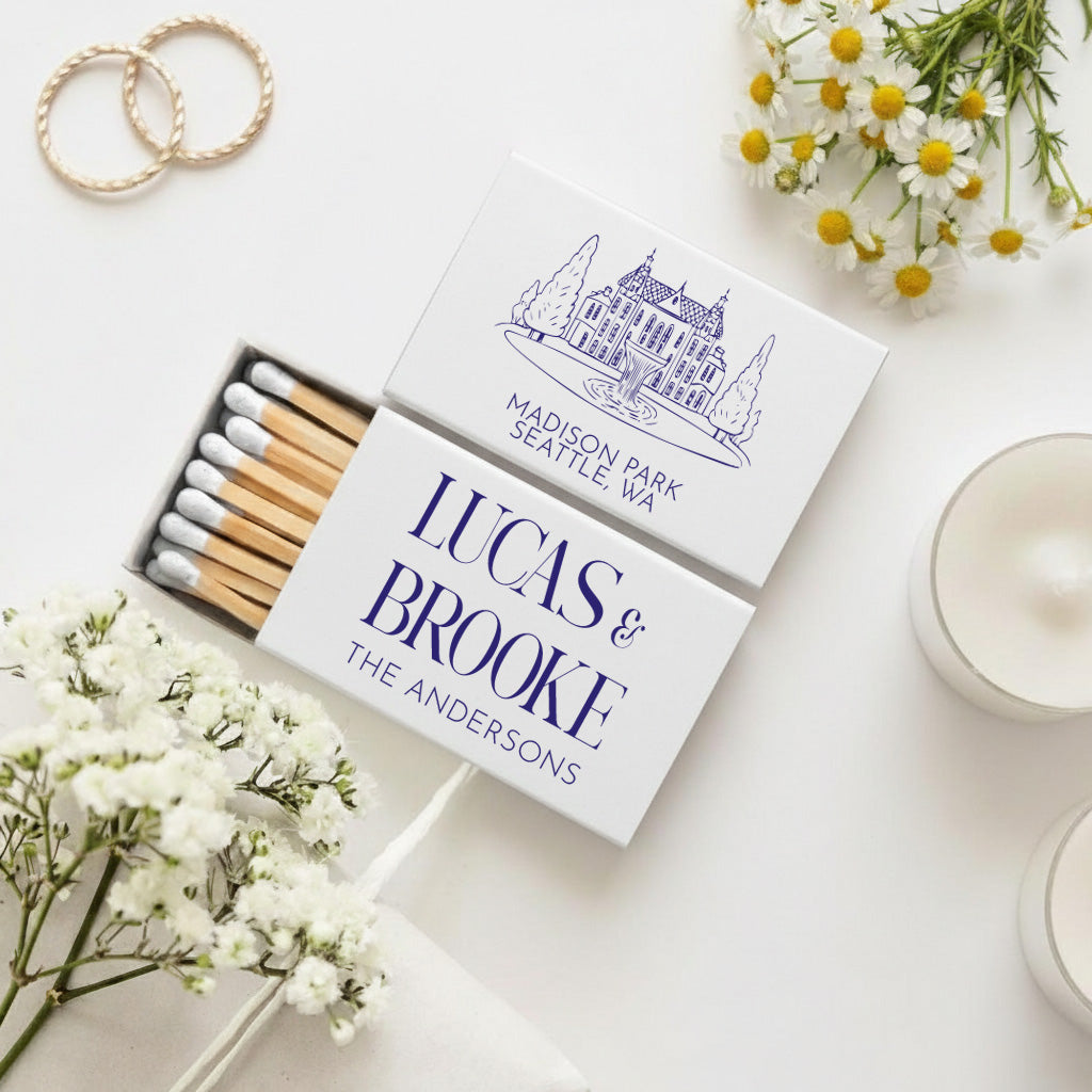 These custom monogram wedding matchboxes are a timeless addition to your celebration. Featuring a clean monogram-style design, they complement romantic, modern, and classic weddings alike. Ideal for wedding favors, rehearsal dinners, bridal showers, or welcome bags, they add a thoughtful finishing touch to your event.