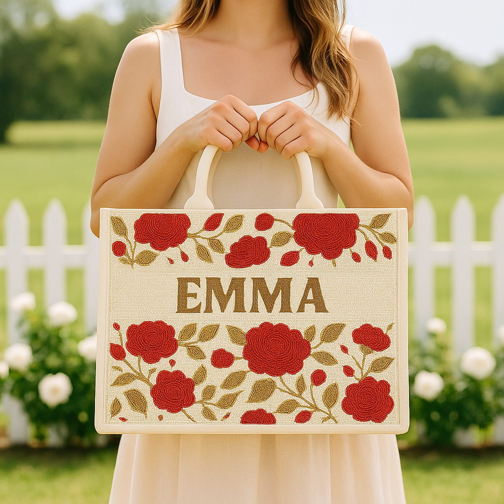 Carry charm and character with our Custom Beaded Tote Bag, thoughtfully handcrafted and personalized just for you. Featuring intricate floral beading, embroidered names or initials, and a romantic rose motif, this one-of-a-kind accessory is both stylish and sentimental. Whether you're gifting it to a loved one or treating yourself, it's perfect for birthdays, weddings, Mother's Day, or everyday elegance. Durable, reusable, and full of heartfelt detail — it’s the floral statement piece your wardrobe (or gift list) needs.