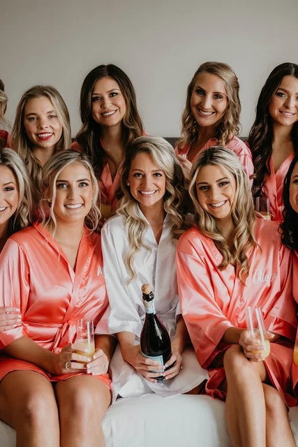 (Set of 12) Bridal Satin Kimono Robes - Wedding Satin Robes